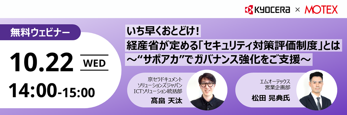 いち早くおとどけ!経産省が定める「セキュリティ対策評価制度」とは~“サポアカ”でガバナンス強化をご支援~ ウェビナー