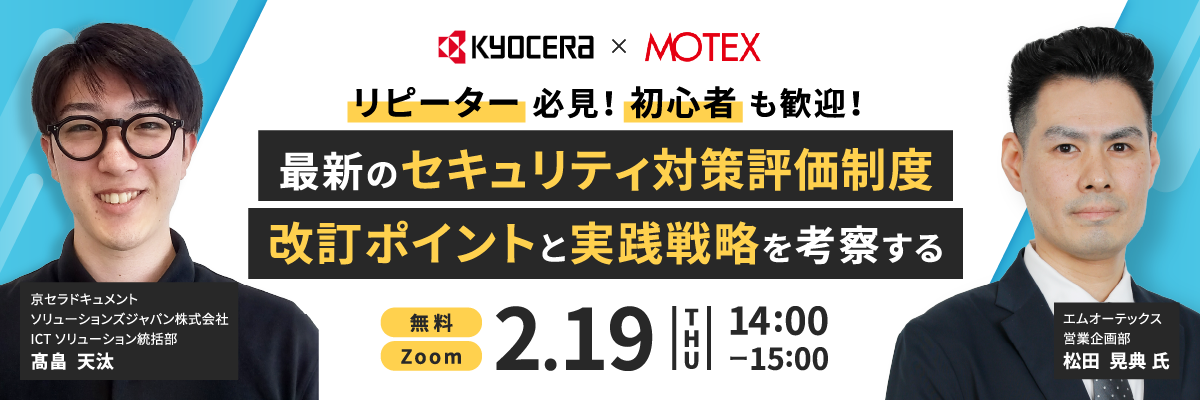 12月26日に改訂された経済産業省「セキュリティ対策評価制度」の最新情報を解説するウェビナーを開催します。本制度は、サプライチェーン全体のセキュリティー強化を目的とし、企業の信頼性確保や取引先評価に直結する重要な仕組みです。今回の改訂で評価基準や運用方針がアップデートされ、企業は新たなリスクを防ぐための対応策を迫られています。